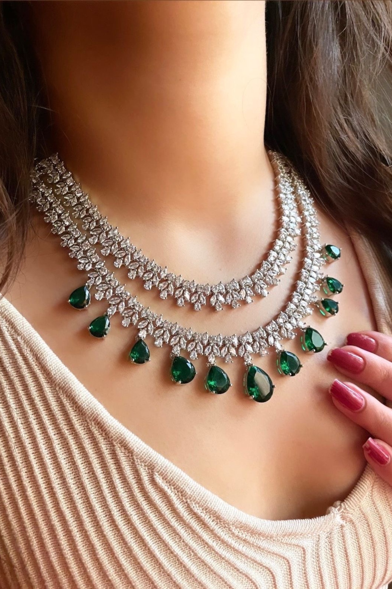 L’émeraude, symbole d’amour et de renouveau, combinée à l’intensité du diamant, fait de ce collier un bijou précieux et intemporel, idéal pour les grandes occasions ou comme héritage de famille.